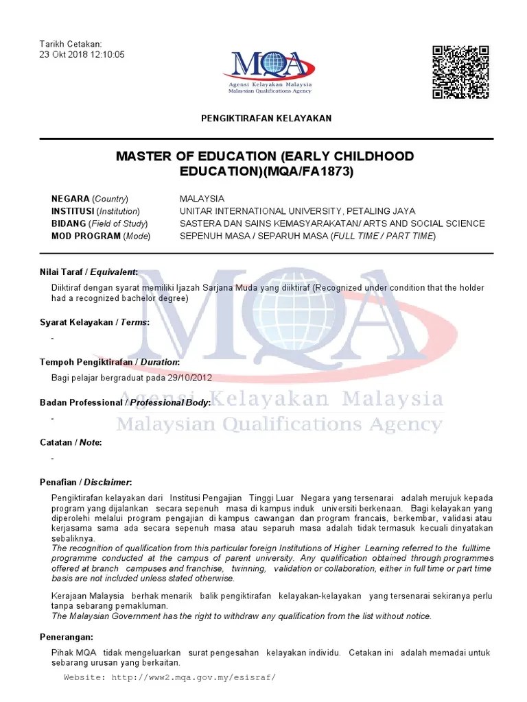 Senarai program pengajian sarjana muda diakreditasikan oleh agensi kelayakan malaysia (mqa) dan diiktiraf oleh jabatan perkhidmatan awam malaysia (jpa). Savesave surat memohon pengiktirafan for later. Telah menerima surat tawaran kemasukan ke tahun pertama pengajian (bagi kemasukan november/disember sesi 2008/2009 atau semester satu sesi 2009/2010) dari pelajar tahun kedua dan ke atas semester satu sesi 2009/2010. Semakan pengiktirafan kelayakan (qualification accreditation) boleh dibuat nota: Sekiranya belum memiliki diploma pendidikan disebabkan belum konvokesyen calon dikehendaki membawa transkrip akademik yang mencatatkan status tamat pengajian atau surat pengesahan bergraduat.
