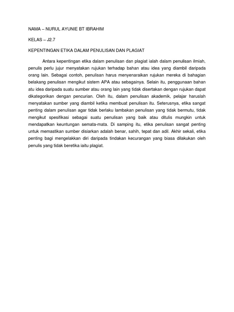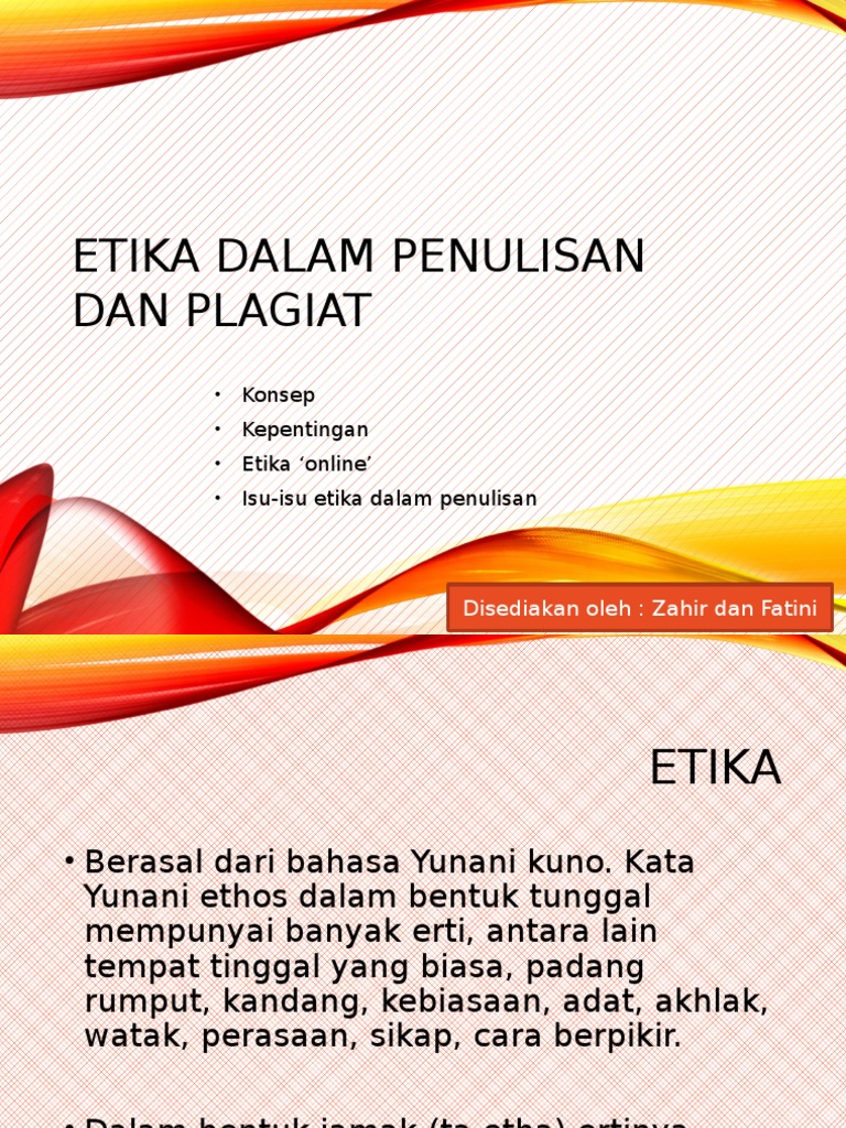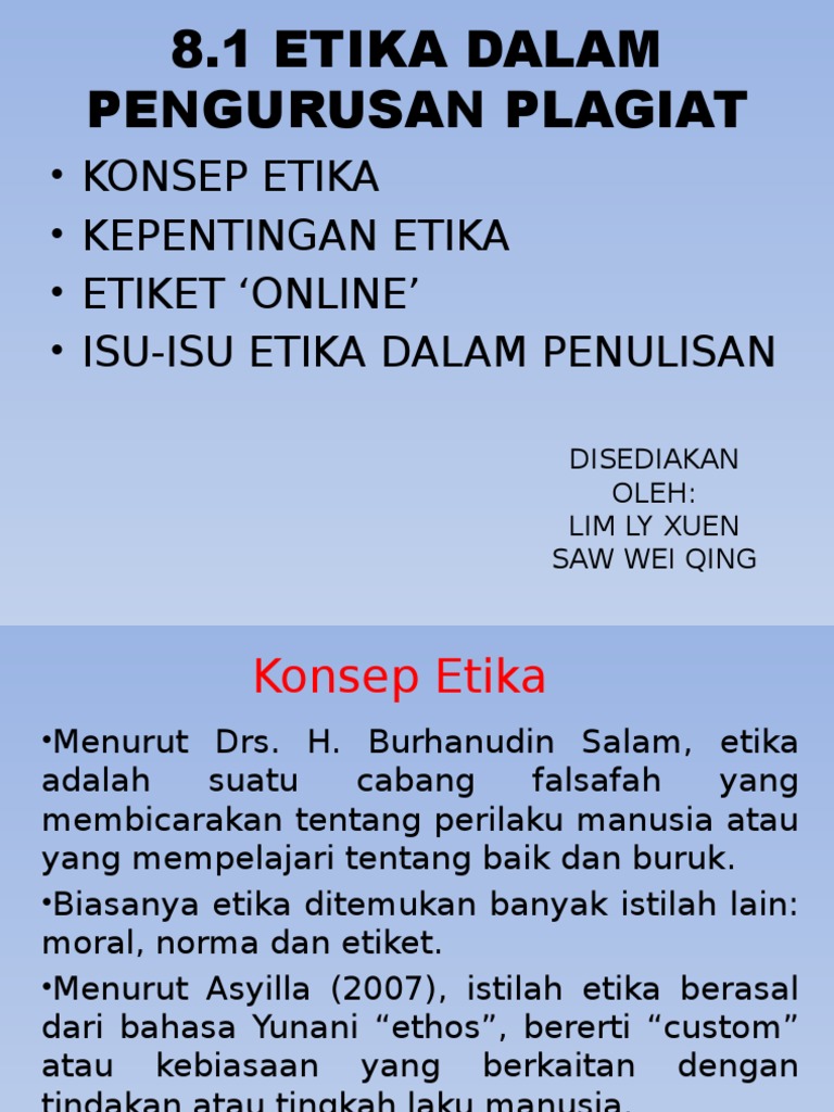 Di dalam penulisan karya ilmiah tidak terlepas dari ide, gagasan, dan teori orang lain yang dapat kita jadikan sebagai sebuah referensi untuk mendukung argumen yang kita bangun. View 7.1a etiket 'online'.ppt from bm sjkc gwp 1092 at institut pendidikan guru kampus batu lintang. Bab 8 etika dalam penulisan dan plagiat 8.1 etika • berasal dari Dalam bentuk jamak (ta etha) ertinya adalah adat kebiasaan. Hal ini kerana, penulis mencuri dan menciplak hasil karya penulis.